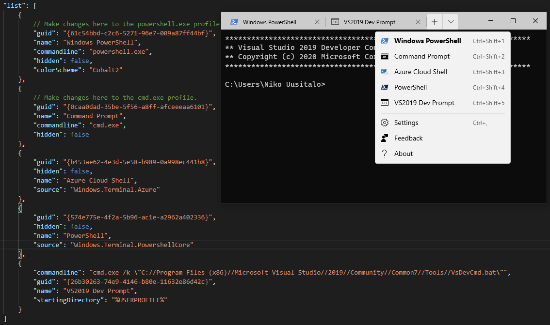 "commandline": "cmd.exe /k \"C://Program Files (x86)//Microsoft Visual Studio//2019//Community//Common7//Tools//VsDevCmd.bat\"",