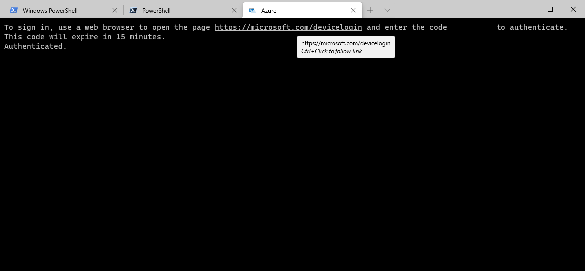 Oh and one more small thing I realised when writing this post - links are now clickable. I bet that's been a feature on more modern terminals before Windows Terminal, but that really breaks the mould of old command line things for me. And that's super useful for things like Azure Cloud Shell which can ask you to visit a website: