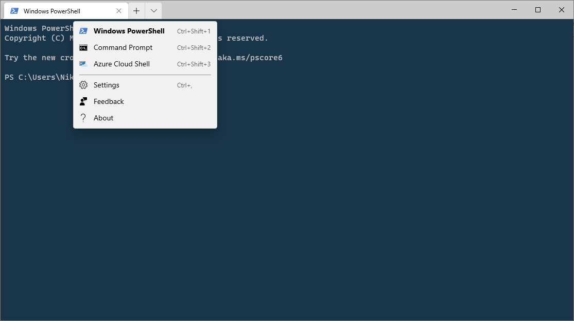 Without me doing anything Windows Terminal had already picked out three shells I had. This is due to a cool feature called Dynamic Profiles where on starting, Windows Terminal it will search through available shells and add new ones if necessary.