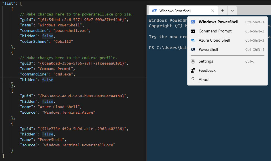 This is about what I see all the time when it comes to "cool things" for Windows Terminal. I'll want to spend some time on this as there are all sorts of themes, transparency, fonts, etc but for the purpose of learning I wanted to see something work. Following Scott's links in the post above I went over to TerminalSplash and grabbed something that didn't have a background image and looked nice. For me that was Cobalt2.
