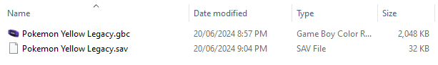 You will probably also notice the save file stored in \GBCSYS\SAVE will have the extension .srm instead of .sav. That's completely fine, just change it to .sav for mGBA to recognise it, then change it back to .srm when copying it back to the SD card.