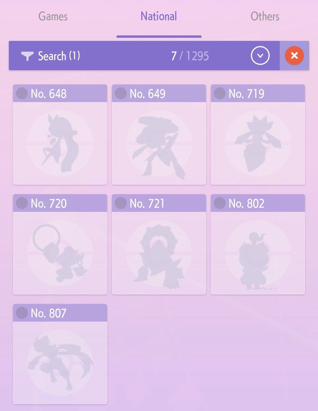 To sum up progress for the Living Dex from BDSP and Arceus, the new mythicals are:
