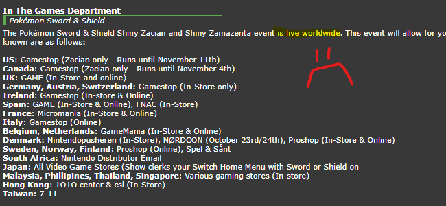 Neat, free shiny Pokémon. Event locations slowly grew over the course of a month or two for this "worldwide" release. Unsurprisingly, no New Zealand.