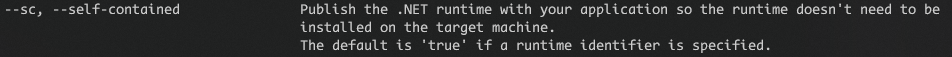 dotnet publish -c Release -r win-x64 --self-contained trueTechnically if we put forward a runtime, -r, the .NET CLI with automatically create the application as self-contained, but it's nice for the clarity (and I swear I read somewhere that it's better to be explicit in case of breaking changes in the future, but I can't find that documentation for the life of me).
