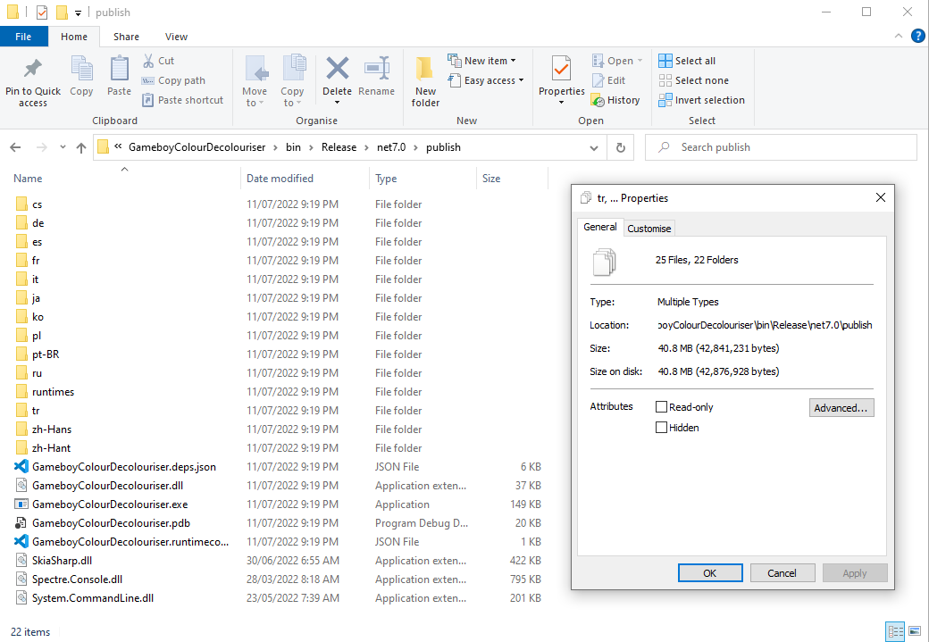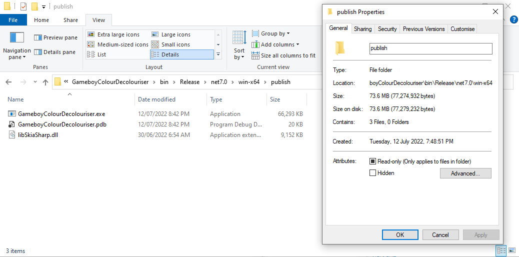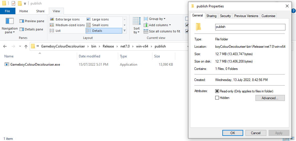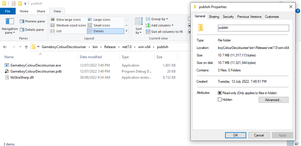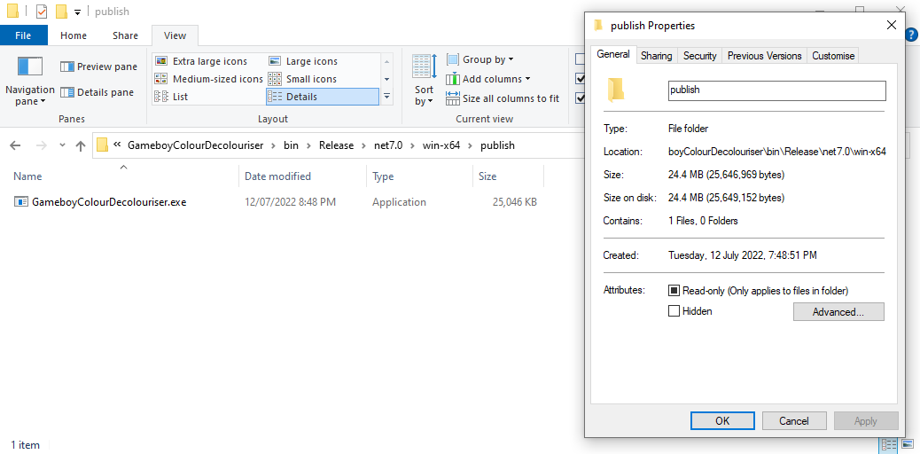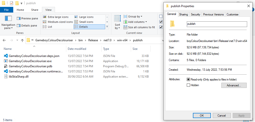 The .NET documentation is great, however sometimes it's easier to grasp a situation with examples you can see. In this post we'll be looking at the .NET Application Publishing documentation in the context of a .NET console tool I wrote: GameboyColour-Decolouriser - it takes in one Gameboy Color image and turns it into the original 4-green-tone Gameboy palette.